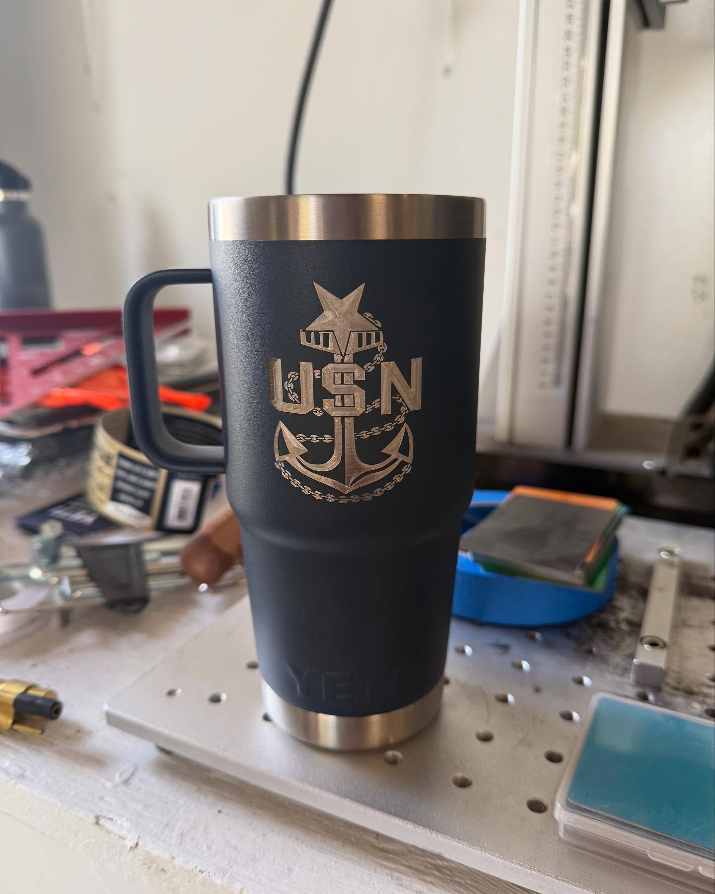 Batch of custom engraved Yetis out for delivery.