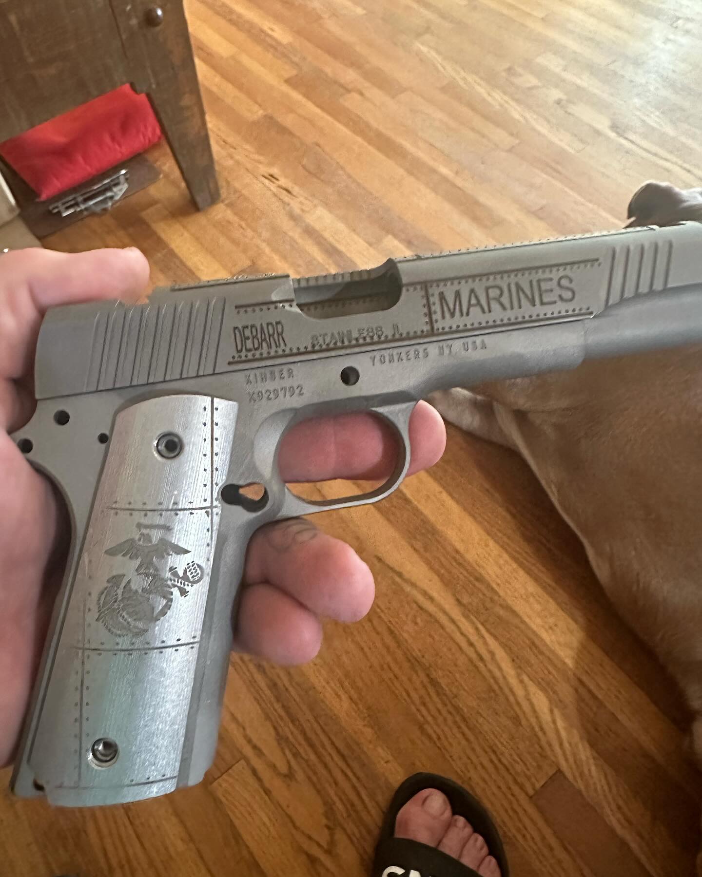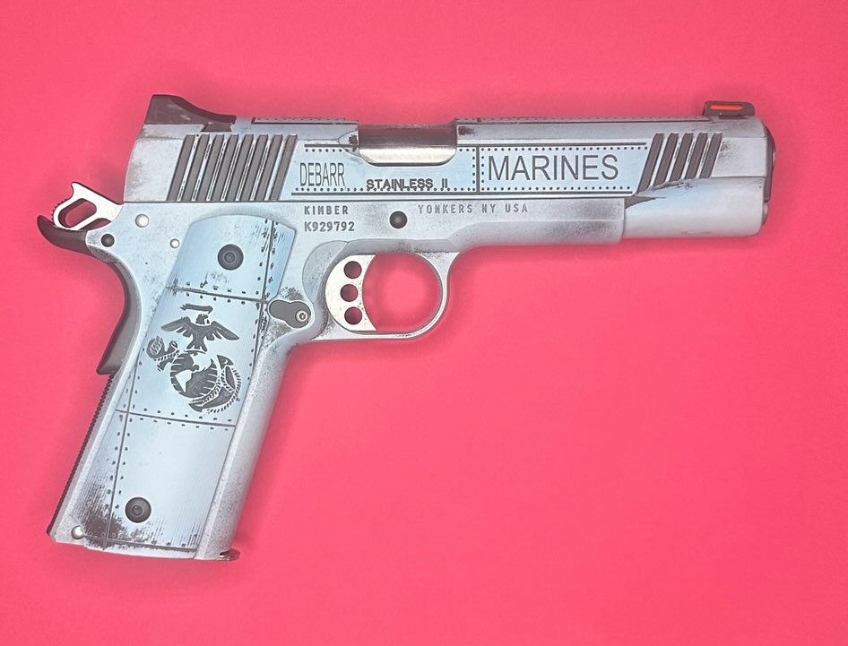 Just delivered this Kimber Stainless II to a retired SgtMaj that I served with. His Wife commissioned the work and surprised him with it.