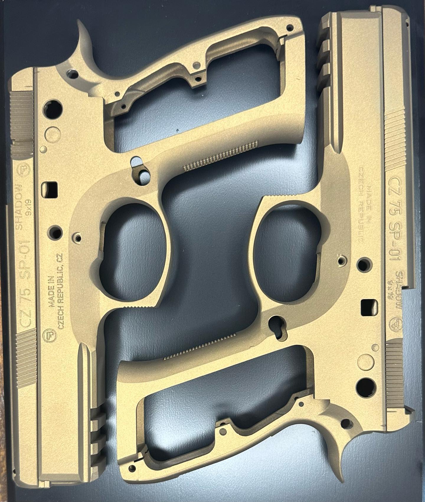 This P320 used to be black… grip module and some burnt bronze cerakote and it’s headed to its new home.