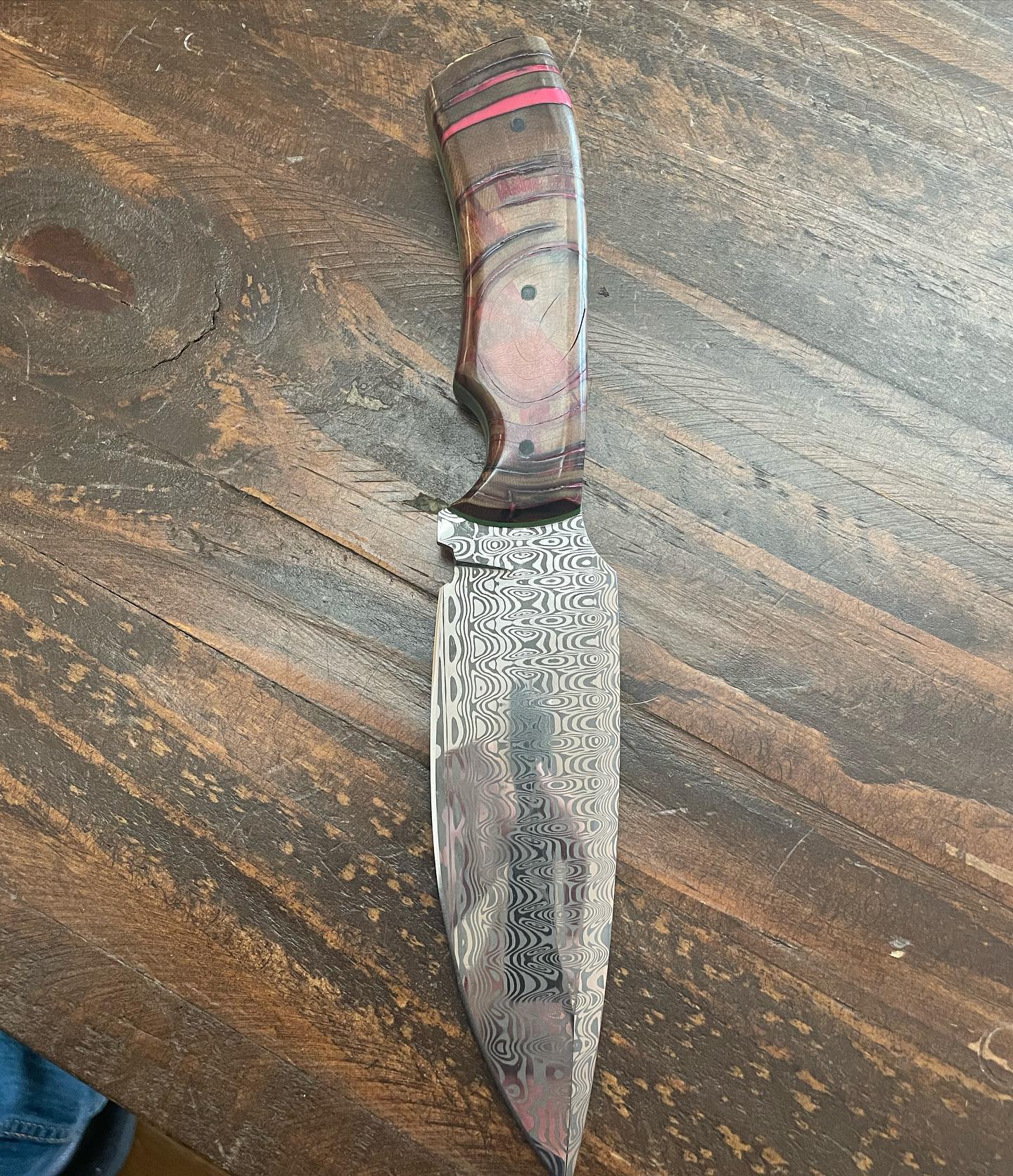 After handling the first dozen UMF knives I had to commission to make a super special one for me. This ladder pattern Dama Steel is.
