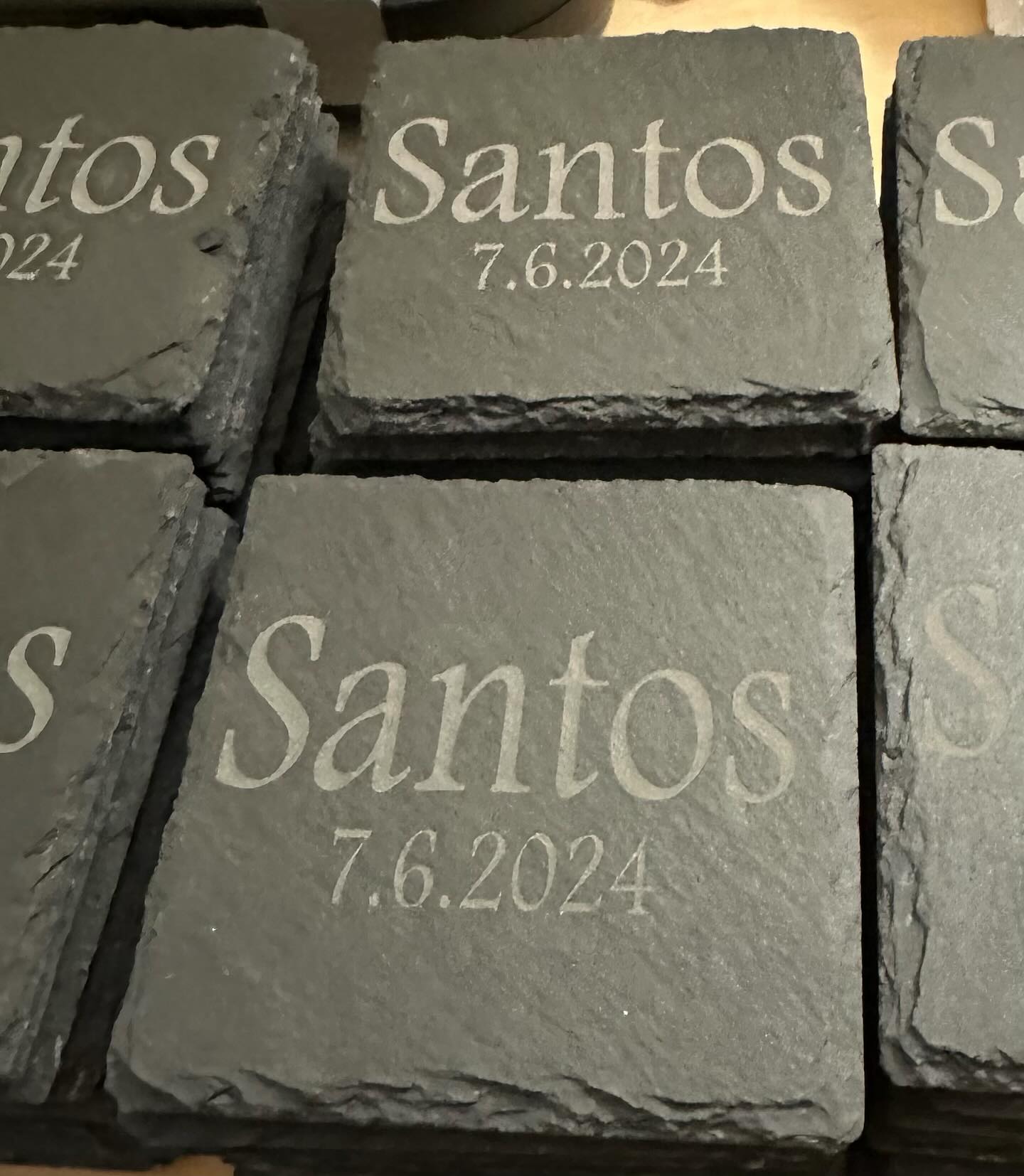 Custom engraved slate coasters.