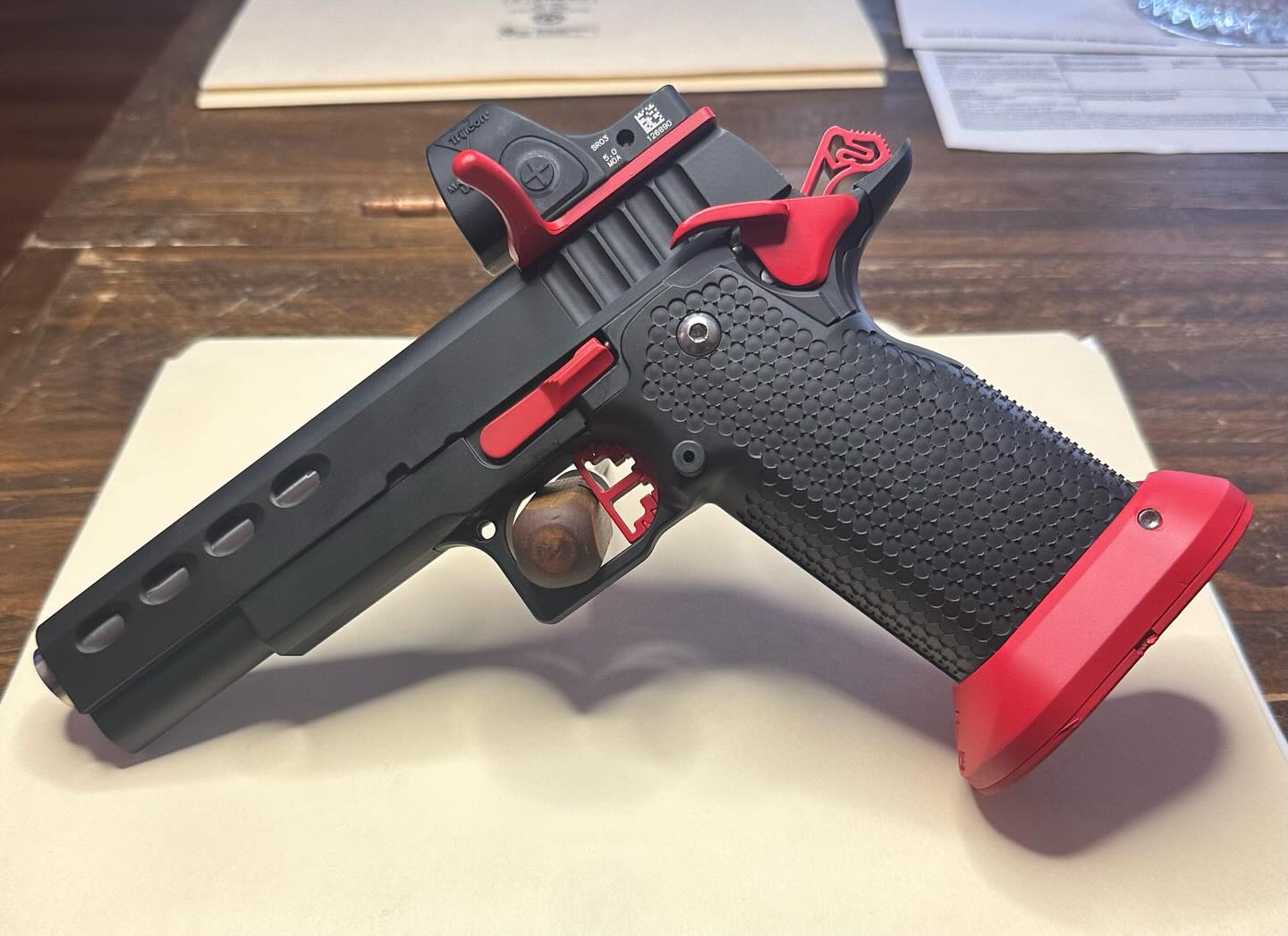 Just got this ported 1911 barrel and lightened slide back from.