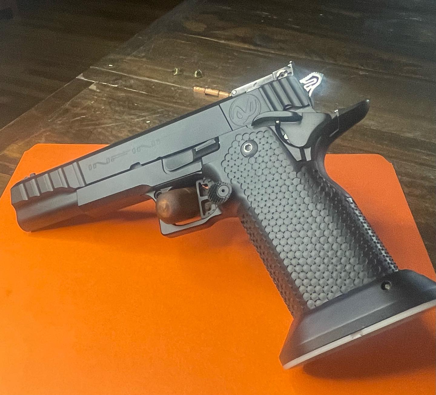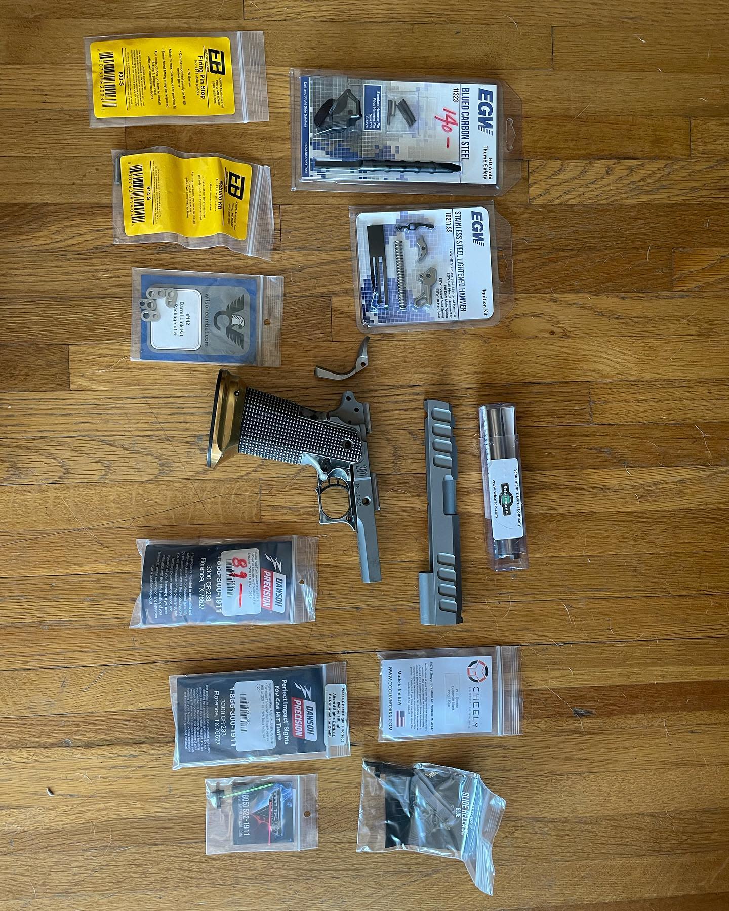 Progress on a 2011 build. Waiting for the frame to come back from the machinist. It’s getting fitted for a Nowlin ramped barrel.