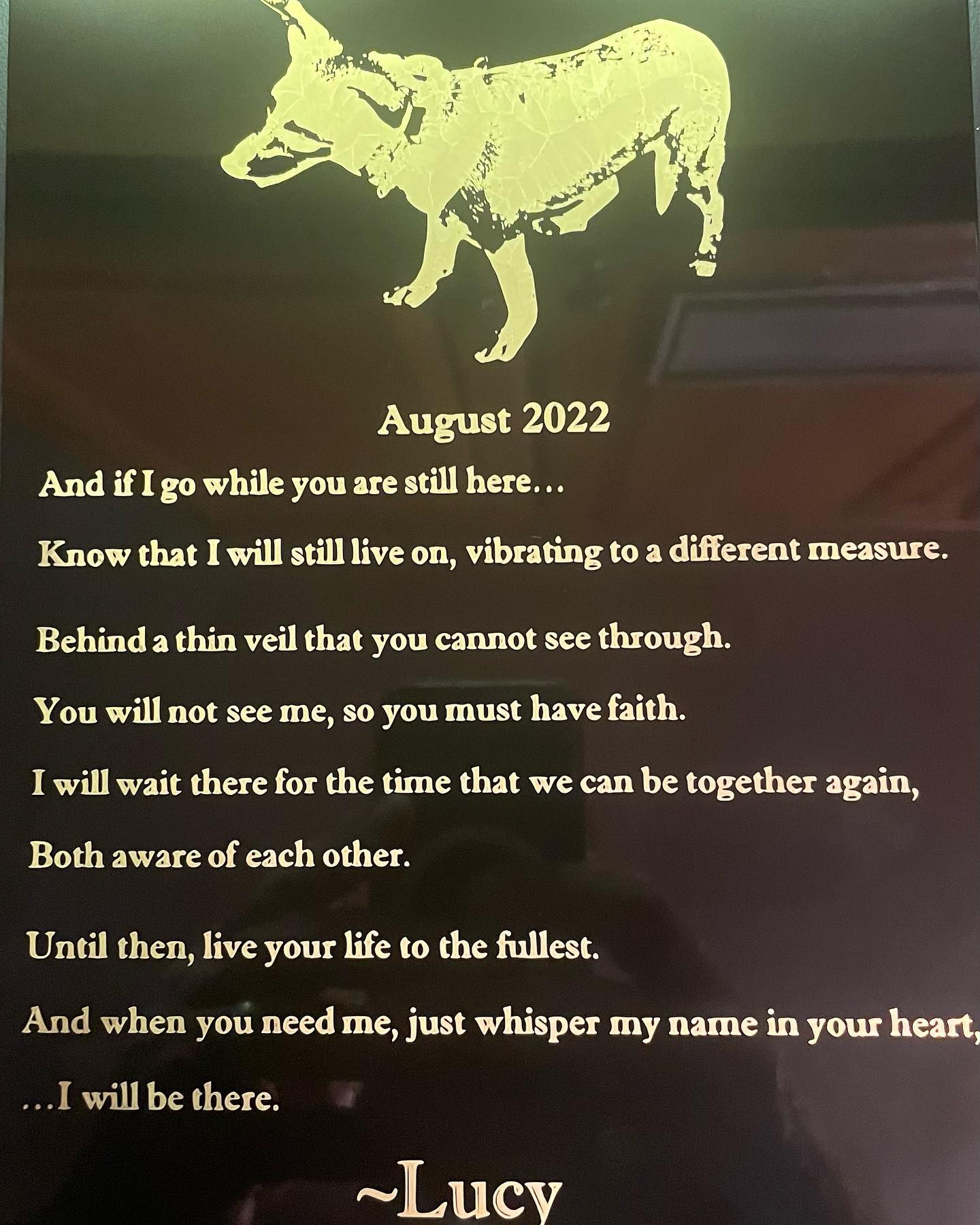 We were able to laser a plaque honoring a Family’s beloved pet -.