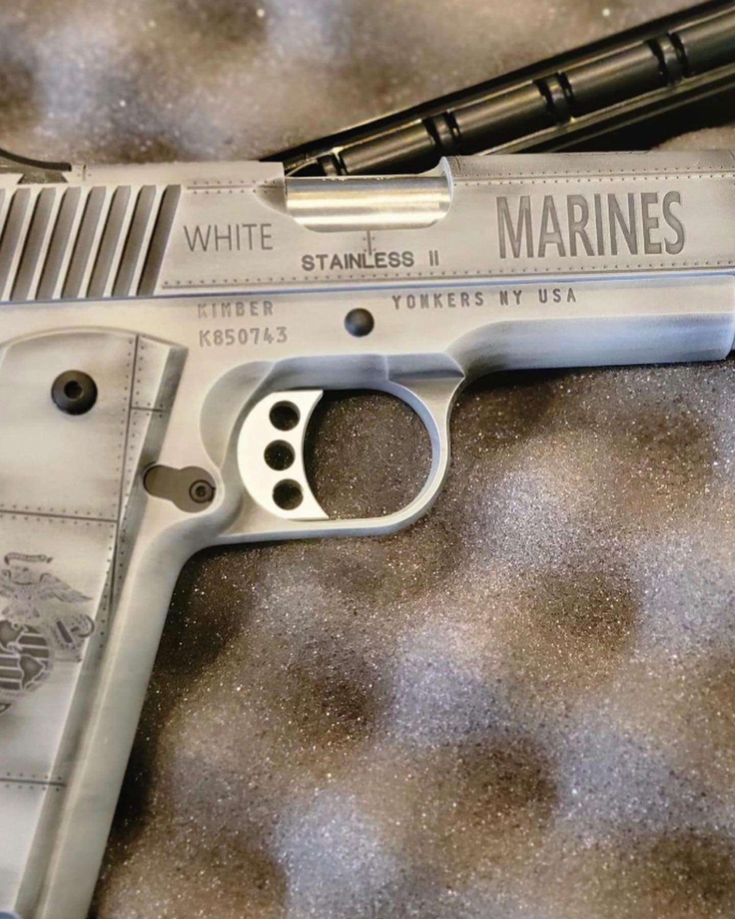 Just delivered this Kimber Stainless II to a retired SgtMaj that I served with. His Wife commissioned the work and surprised him with it.